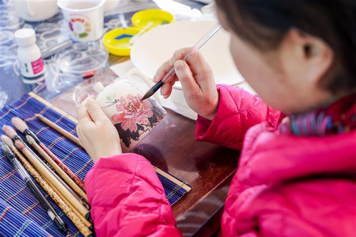 整场体验活动围绕“非遗传承+老年适配”设计内容,设置“阶梯式教学+一对一示范+简化工具”专属模式,通过系统宣讲非遗文化,介绍牙舟陶历史发展,示范核心技艺,同时结合老年学员的体能与腰部力量实际情况,巧妙化解泥料把控、体力分配等现场实操难点,帮助老年学员快速上手。目前,牙舟陶体验活动已过半,老年学员已经掌握了核心操作步骤,将国画笔墨韵味融入陶面创作,正用灵巧的双手为传统牙舟陶注入新活力。
