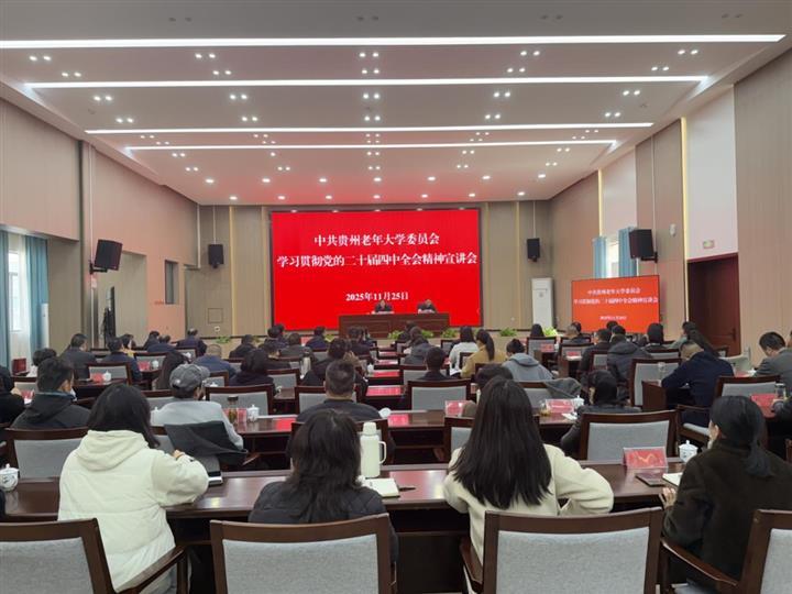 2025年11月25日,中共贵州老年大学委员会举行党的二十届四中全会精神及省委十三届八次全会精神宣讲报告会。省委组织部副部长,省委老干部局局长,贵州老年大学党委书记、校长龙丽红作宣讲报告。学校党委班子成员、离退休党支部支委、全体干部职工参加。