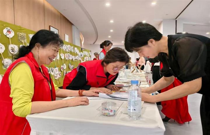 在观山湖区老年大学及基层老年学校期末汇演暨庆祝贵州省老年教育发展40周年活动现场,一边是老年学员们声情并茂的倾情展示,一边是观山湖区老年大学师生志愿者搭起的义卖展台,志愿者们忙碌张罗着展品,将师生志愿者们亲自绘制的国画、书法作品,手工制作的烘焙食品、艾草捶、簪花、零钱包等逐一陈列。围观群众络绎不绝,大家纷纷义买自己心仪的作品,观山湖区老年大学的师生及家属也积极参与义买,奉献自己的爱心。