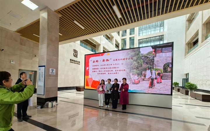 为深入贯彻落实习近平文化思想,弘扬中华优秀传统文化和非物质文化遗产,丰富老年学员精神文化生活。2026年4月23日,我校以“大明遗风·银龄探幽”为主题,成功举办“乐龄·新知”屯堡文化游学沙龙。沙龙由贵州金讲匠传媒有限公司高级讲师常洲主讲,系统展示了贵州屯堡文化的历史渊源、独特风貌与时代价值,受到老年学员的热烈欢迎,学校八个教学系及文化艺术团近60位学员积极参与。