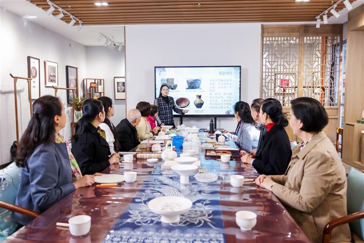 整场体验活动围绕“非遗传承+老年适配”设计内容,设置“阶梯式教学+一对一示范+简化工具”专属模式,通过系统宣讲非遗文化,介绍牙舟陶历史发展,示范核心技艺,同时结合老年学员的体能与腰部力量实际情况,巧妙化解泥料把控、体力分配等现场实操难点,帮助老年学员快速上手。目前,牙舟陶体验活动已过半,老年学员已经掌握了核心操作步骤,将国画笔墨韵味融入陶面创作,正用灵巧的双手为传统牙舟陶注入新活力。