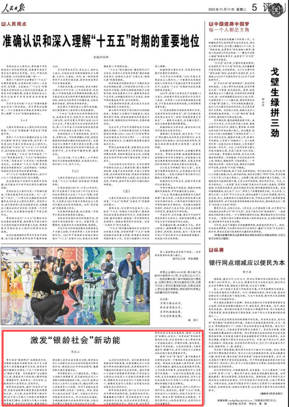 老骥伏枥,老当益壮,老年人同样可以有所作为、绽放光彩。展望“十五五”时期,积极应对人口老龄化,积极开发老年人力资源,“银发力量”将得到更全面展现。中国式现代化,必会因老有所为、老有所乐而更添温馨底色。