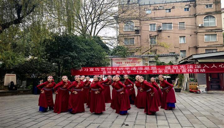 为深入学习宣传习近平法治思想,推动宪法宣传教育走进基层、贴近群众,12月4日,贵州老年大学文化艺术团走进盐务街道百腊井社区开展“国家宪法日”宣传活动。