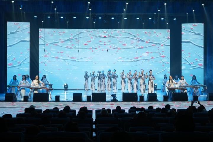 黔西南州老年大学红色故事讲述组的《盘江红韵·薪火传》,以饱含深情的叙述,将盘江流域的红色历史与新时代的使命担当娓娓道来。兴义市、兴仁市带来的《霓裳筝语》《歌唱祖国》将时装秀与器乐演奏完美融合,展现出古典与时尚的碰撞。晴隆县带来的非遗舞蹈《阿妹戚托》,以原生态的舞步和浓郁的民族风情,赢得现场阵阵掌声。安龙县带来的《加油文化之歌》《少年张之洞》以及贞丰县带来的《夕阳红》,生动展现了精神接续的温暖图景。普安县带来的《茶韵》、册亨县带来的《贺喜堂》、望谟县带来的《归园田居》等节目,巧妙融合本土文化元素,彰显黔西南州深厚的文化底蕴。黔西南州妇幼保健院带来的情景表演《安馨》,温情诠释“医养结合、健康养老”的理念,感人至深。