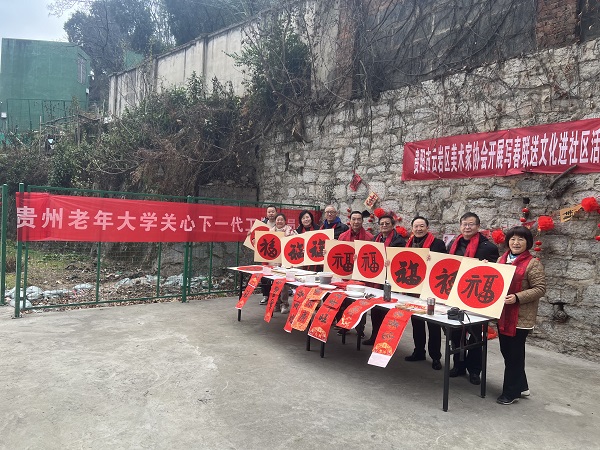 1月29日下午,贵州老年大学关心下一代工作委员会与离退休干部处携手组织工作人员及老年学员,走进贵阳市云岩区八鸽岩街道,开展“送文化进基层”活动,为社区居民送去新春的祝福与温暖。