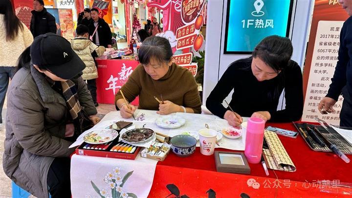 近期,凯里市老年大学书法研修班、绘画班受邀在凯里国贸“新春集市”摊位亮相,学员们的书画作品通过义卖的方式,助推“关心下一代”工作。