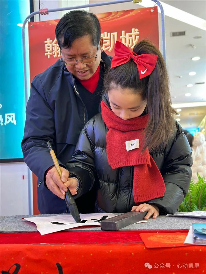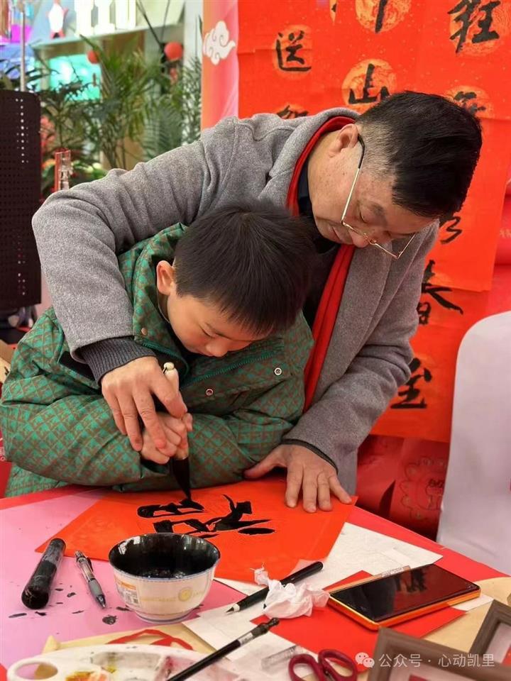 活动现场,除了免费书写春联外,还教过往的孩子们书写“福”字,让孩子们感受中国传统文化的魅力。