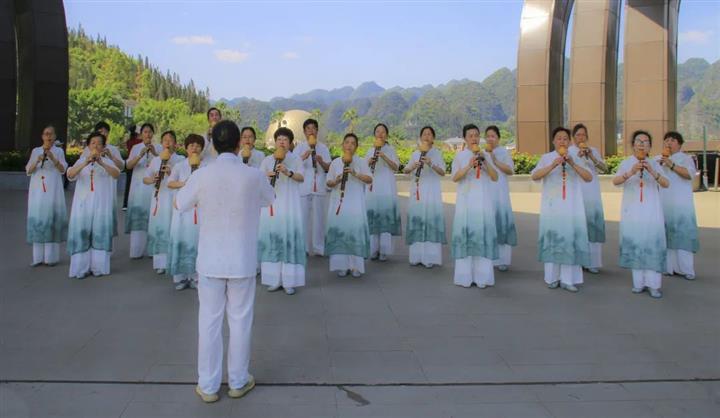 在歌舞表演区,学员们合唱《没有共产党就没有新中国》拉开活动序幕,舞蹈班学员们身着民族特色服饰翩翩起舞,灵动的身姿、灿烂的笑容,展现黔西南民族特色风采;葫芦丝班学员们歌曲悠扬的葫芦丝声如潺潺溪流,流淌在景区之中,展示出老年学员们积极的生活态度和享受康养的生活方式,引得游客们纷纷驻足观看,掌声和喝彩声此起彼伏。