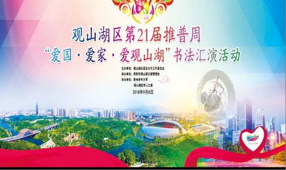 观山湖区第21届推普周“爱国、爱家,爱观山湖”书法汇演活动,旨在弘扬社会主义核心价值观和伟大的爱国主义,缅怀中国人民抗日战争中英勇献身的英烈,重在开展群众性爱国主义教育书法汇演。